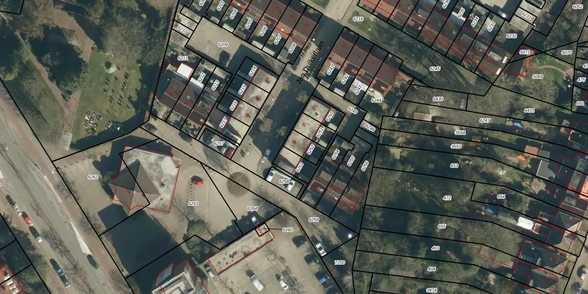 Gebruik de zoekbalk of klik op een perceel voor informatie over de adressen binnen dit perceel.