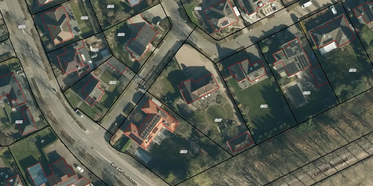 Het perceel waarop Jan Glaserlaan 4 staat heeft een oppervlakte van 1669 m². Dit is een zeer groot perceel. De perceeloppervlakte wordt geregistreerd door het Kadaster. Gedetailleerde informatie over de maten van dit perceel kunt u vinden in het rapport Kadastrale kaart met maatvoering van Jan Glaserlaan 4.