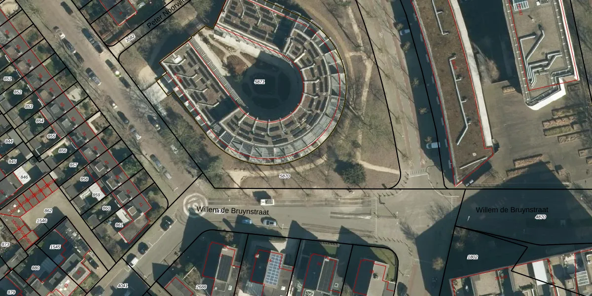 Het perceel waarop het adres ligt is WSL01-L-5871. De afkorting 'WSL01' staat voor kadastrale gemeente Woensel. Het perceel is met 2552 m² relatief groot. Het gemiddelde ligt in de kadastrale gemeente Woensel op 1038,95 m². Het grootste perceel in de kadastrale gemeente is 74,9 ha. Het kleinste perceel heeft een oppervlakte van 0 m². Er zijn 57 adressen aanwezig op het perceel. De huidige grenzen van het perceel zijn digitaal in de Basisregistratie Kadaster (BRK) geregistreerd op 24-02-2022.