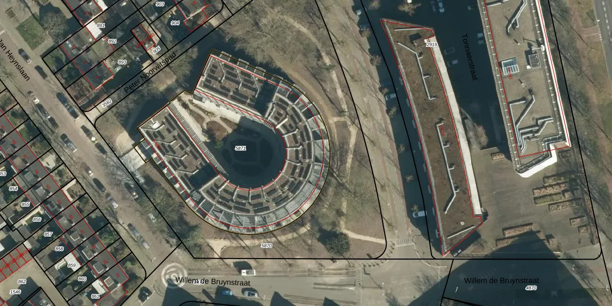 Het perceel waarop Jan Heynslaan 4-29 staat heeft een oppervlakte van 2552 m². Dit is een zeer groot perceel. De perceeloppervlakte wordt geregistreerd door het Kadaster. Gedetailleerde informatie over de maten van dit perceel kunt u vinden in het rapport Kadastrale kaart met maatvoering van Jan Heynslaan 4-29.