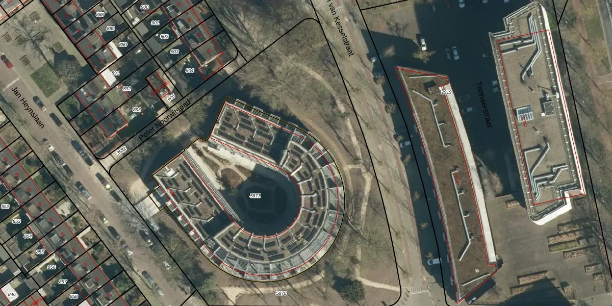 Het perceel waarop Jan Heynslaan 4-32 staat heeft een oppervlakte van 2552 m². Dit is een zeer groot perceel. De perceeloppervlakte wordt geregistreerd door het Kadaster. Gedetailleerde informatie over de maten van dit perceel kunt u vinden in het rapport Kadastrale kaart met maatvoering van Jan Heynslaan 4-32.