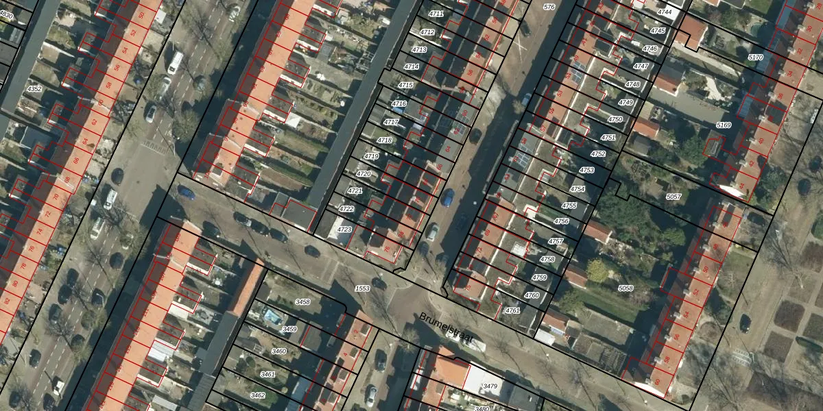 Gebruik de zoekbalk of klik op een perceel voor informatie over de adressen binnen dit perceel.