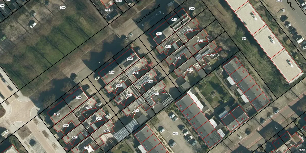 Het perceel waarop Jan Romeinstraat 30 staat heeft een oppervlakte van 203 m². Dit is een middelgroot perceel. De perceeloppervlakte wordt geregistreerd door het Kadaster. Gedetailleerde informatie over de maten van dit perceel kunt u vinden in het rapport Kadastrale kaart met maatvoering van Jan Romeinstraat 30.