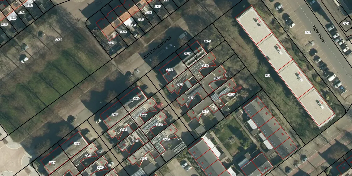 Jan Romeinstraat 38 is gelegen op kadastraal perceel WSL01P3472. Deze kadastrale aanduiding is uniek en wordt gebruikt door het Kadaster om eigendomsrechten en andere zakelijke rechten vast te leggen. Het perceel maakt onderdeel uit van de kadastrale gemeente Woensel.