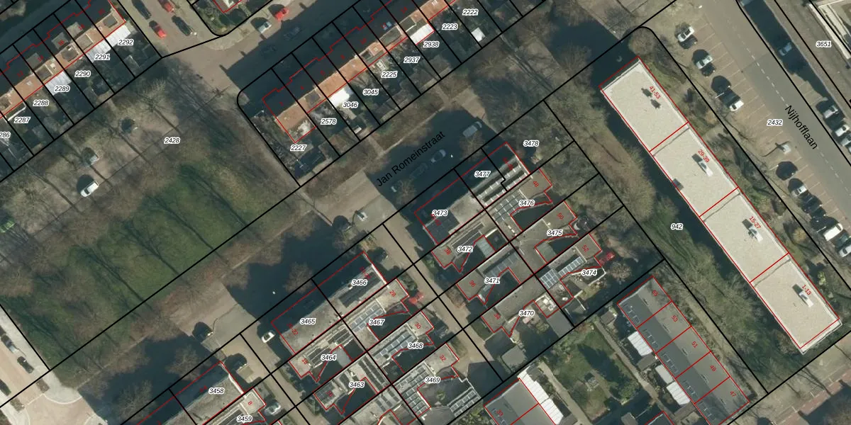 Jan Romeinstraat 42 is gelegen op kadastraal perceel WSL01P3473. Deze kadastrale aanduiding is uniek en wordt gebruikt door het Kadaster om eigendomsrechten en andere zakelijke rechten vast te leggen. Het perceel maakt onderdeel uit van de kadastrale gemeente Woensel.