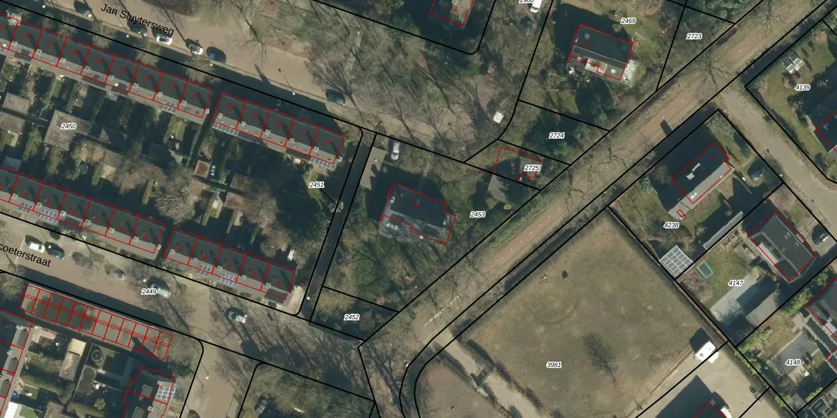 Jan Sluytersweg 13 is gelegen op kadastraal perceel STM00F2453. Deze kadastrale aanduiding is uniek en wordt gebruikt door het Kadaster om eigendomsrechten en andere zakelijke rechten vast te leggen. Het perceel maakt onderdeel uit van de kadastrale gemeente Stratum.