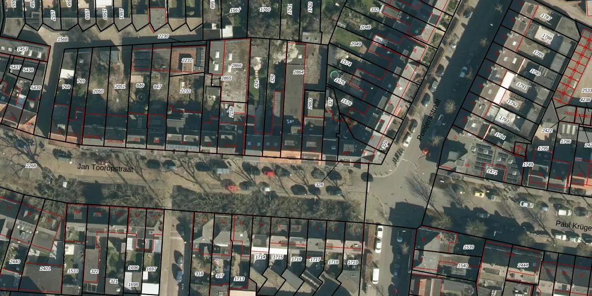 Het perceel waarop Jan Tooropstraat 6 staat heeft een oppervlakte van 391 m². Dit is een groot perceel. De perceeloppervlakte wordt geregistreerd door het Kadaster. Gedetailleerde informatie over de maten van dit perceel kunt u vinden in het rapport Kadastrale kaart met maatvoering van Jan Tooropstraat 6.