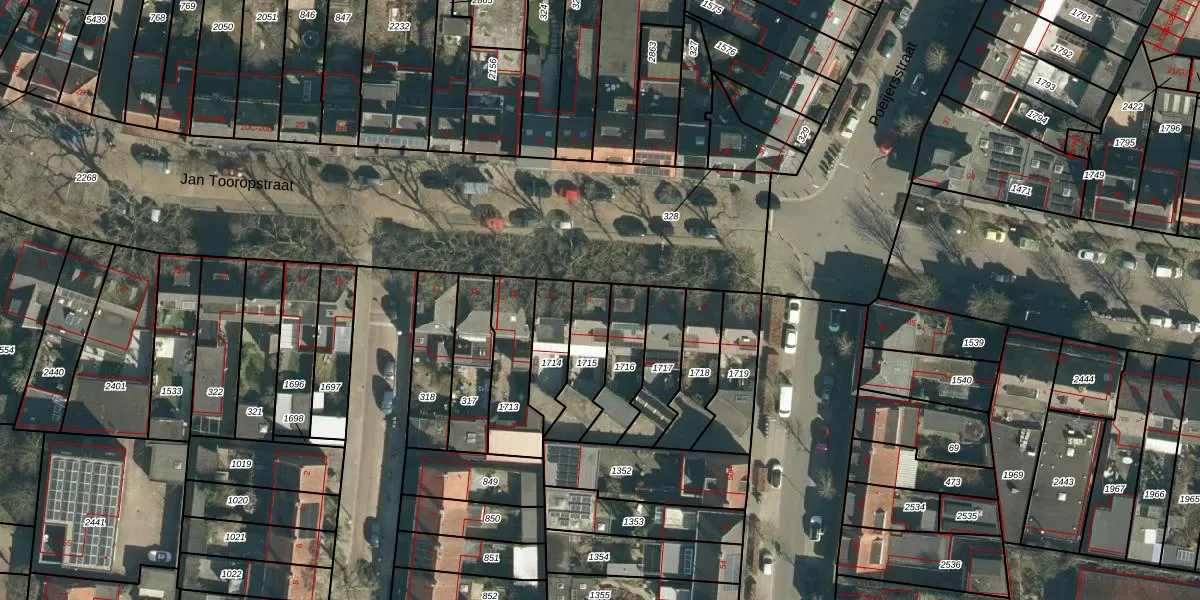 Het perceel waarop Jan Tooropstraat 9 staat heeft een oppervlakte van 172 m². Dit is een middelgroot perceel. De perceeloppervlakte wordt geregistreerd door het Kadaster. Gedetailleerde informatie over de maten van dit perceel kunt u vinden in het rapport Kadastrale kaart met maatvoering van Jan Tooropstraat 9.