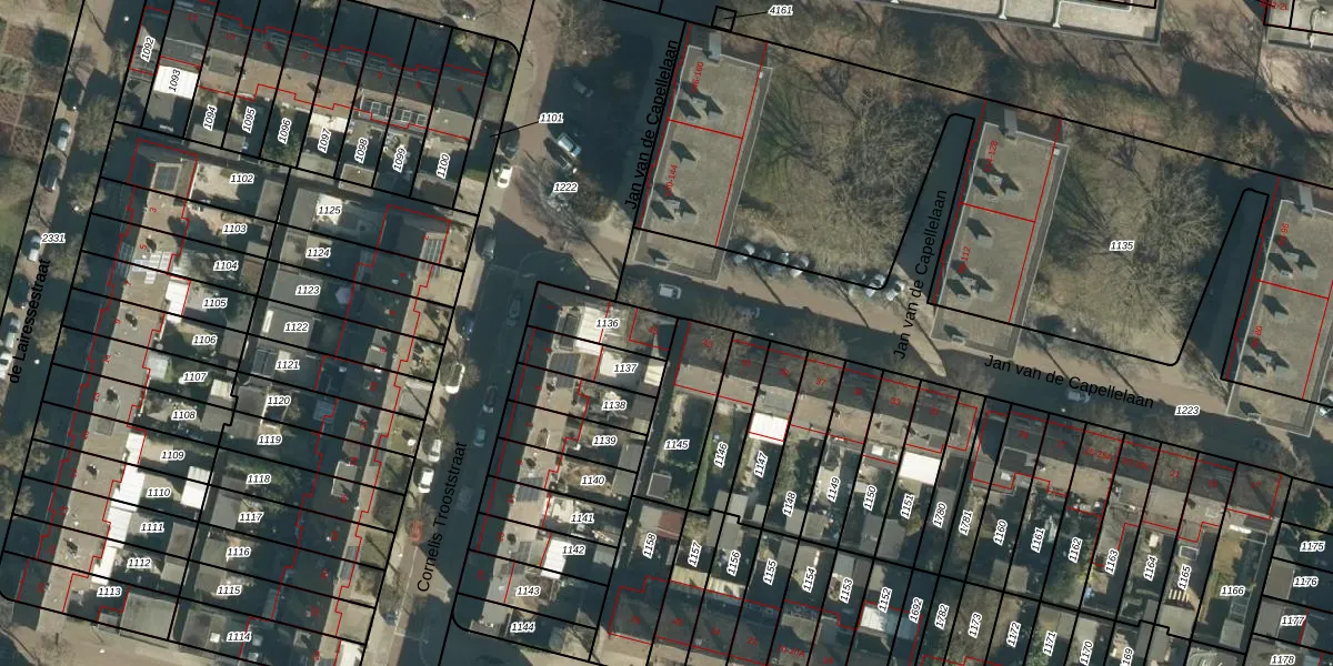 Het perceel waarop Jan van de Capellelaan 45 staat heeft een oppervlakte van 142 m². Dit is een middelgroot perceel. De perceeloppervlakte wordt geregistreerd door het Kadaster. Gedetailleerde informatie over de maten van dit perceel kunt u vinden in het rapport Kadastrale kaart met maatvoering van Jan van de Capellelaan 45.