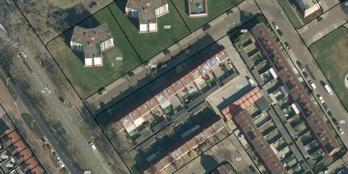 Het perceel waarop Jan van den Eyndestraat 16 staat heeft een oppervlakte van 7942 m². Dit is een zeer groot perceel. De perceeloppervlakte wordt geregistreerd door het Kadaster. Gedetailleerde informatie over de maten van dit perceel kunt u vinden in het rapport Kadastrale kaart met maatvoering van Jan van den Eyndestraat 16.