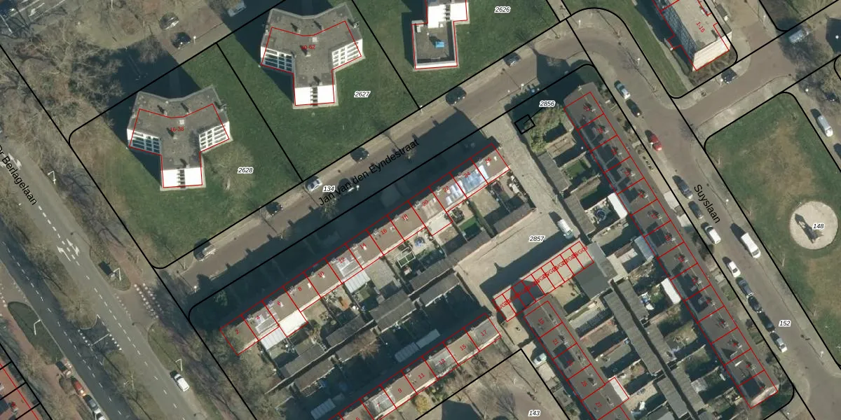 Jan van den Eyndestraat 20 is gelegen op kadastraal perceel WSL01P2857. Deze kadastrale aanduiding is uniek en wordt gebruikt door het Kadaster om eigendomsrechten en andere zakelijke rechten vast te leggen. Het perceel maakt onderdeel uit van de kadastrale gemeente Woensel.