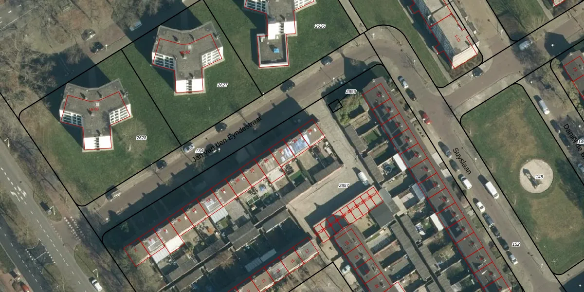 Jan van den Eyndestraat 24 is gelegen op kadastraal perceel WSL01P2857. Deze kadastrale aanduiding is uniek en wordt gebruikt door het Kadaster om eigendomsrechten en andere zakelijke rechten vast te leggen. Het perceel maakt onderdeel uit van de kadastrale gemeente Woensel.