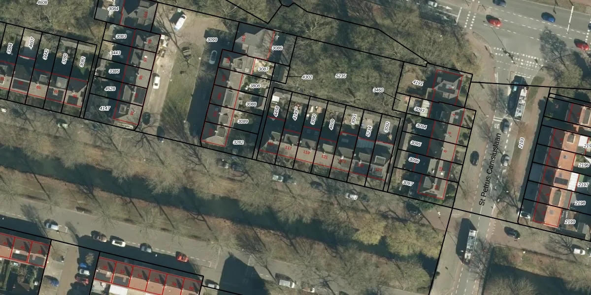 Gebruik de zoekbalk of klik op een perceel voor informatie over de adressen binnen dit perceel.