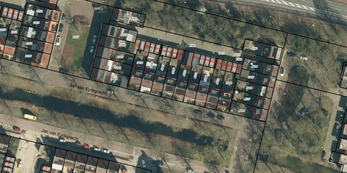 Het perceel waarop Jan van Eyckgracht 179 staat heeft een oppervlakte van 177 m². Dit is een middelgroot perceel. De perceeloppervlakte wordt geregistreerd door het Kadaster. Gedetailleerde informatie over de maten van dit perceel kunt u vinden in het rapport Kadastrale kaart met maatvoering van Jan van Eyckgracht 179.