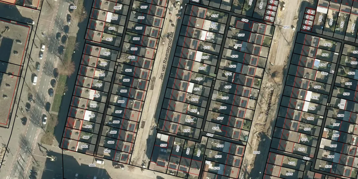 Gebruik de zoekbalk of klik op een perceel voor informatie over de adressen binnen dit perceel.