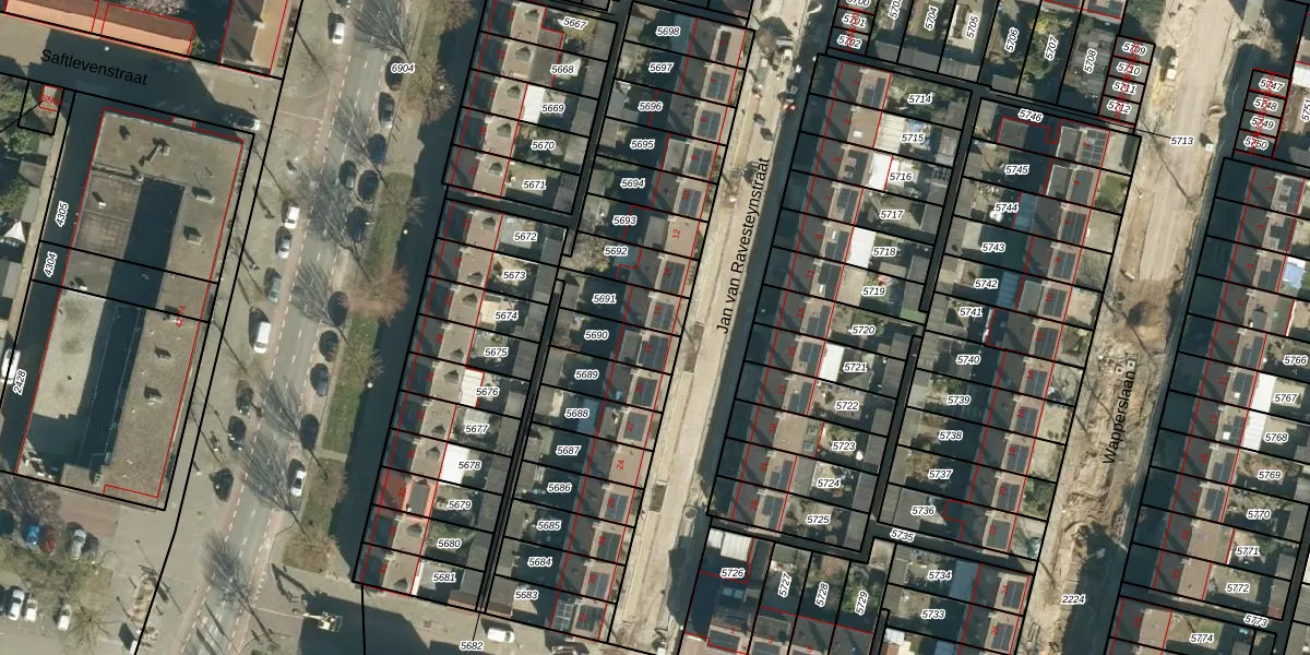Gebruik de zoekbalk of klik op een perceel voor informatie over de adressen binnen dit perceel.