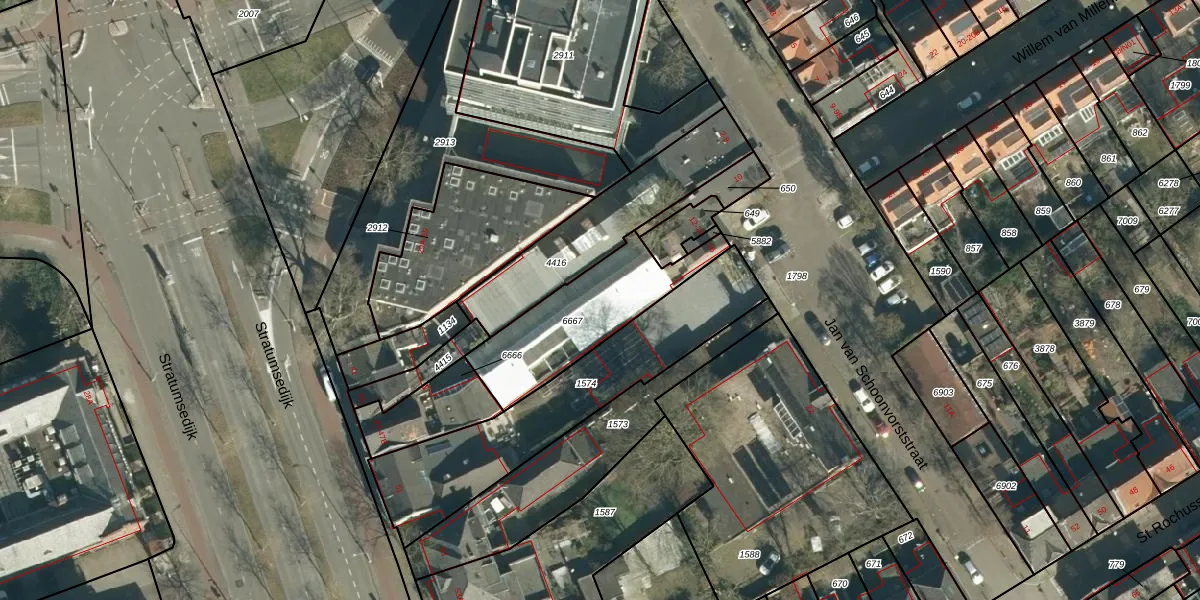 Jan van Schoonvorststraat 16 is gelegen op kadastraal perceel STM00E6667. Deze kadastrale aanduiding is uniek en wordt gebruikt door het Kadaster om eigendomsrechten en andere zakelijke rechten vast te leggen. Het perceel maakt onderdeel uit van de kadastrale gemeente Stratum.