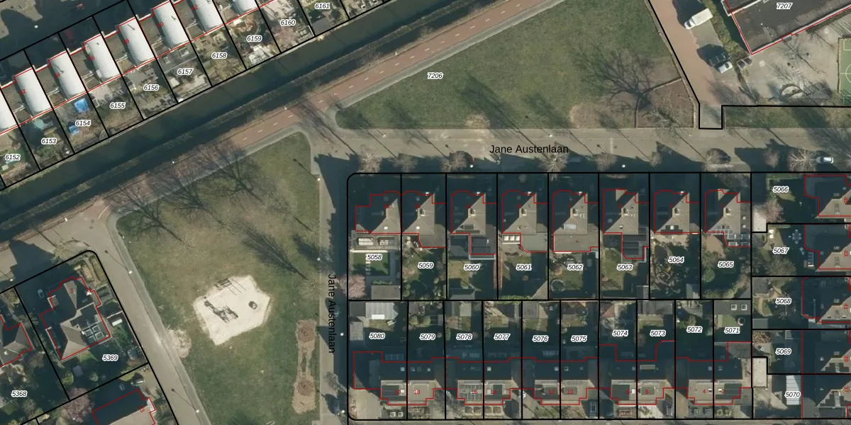 Jane Austenlaan 13 is gelegen op kadastraal perceel WSL01W5059. Deze kadastrale aanduiding is uniek en wordt gebruikt door het Kadaster om eigendomsrechten en andere zakelijke rechten vast te leggen. Het perceel maakt onderdeel uit van de kadastrale gemeente Woensel.