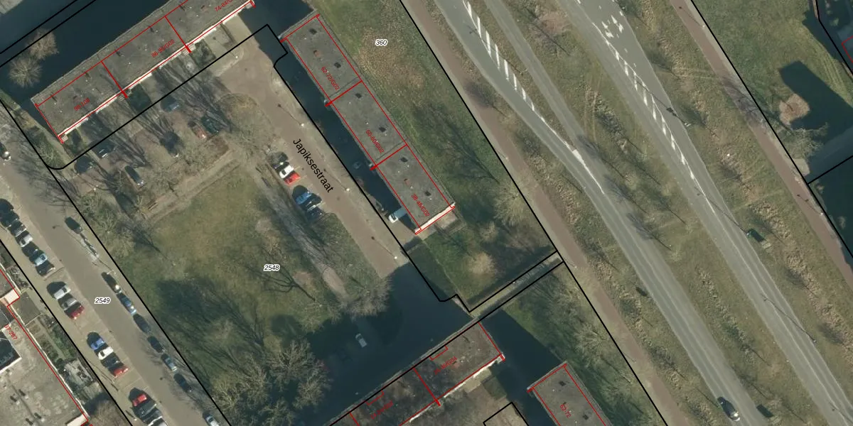 Het perceel waarop Japiksestraat 42 staat heeft een oppervlakte van 5116 m². Dit is een zeer groot perceel. De perceeloppervlakte wordt geregistreerd door het Kadaster. Gedetailleerde informatie over de maten van dit perceel kunt u vinden in het rapport Kadastrale kaart met maatvoering van Japiksestraat 42.