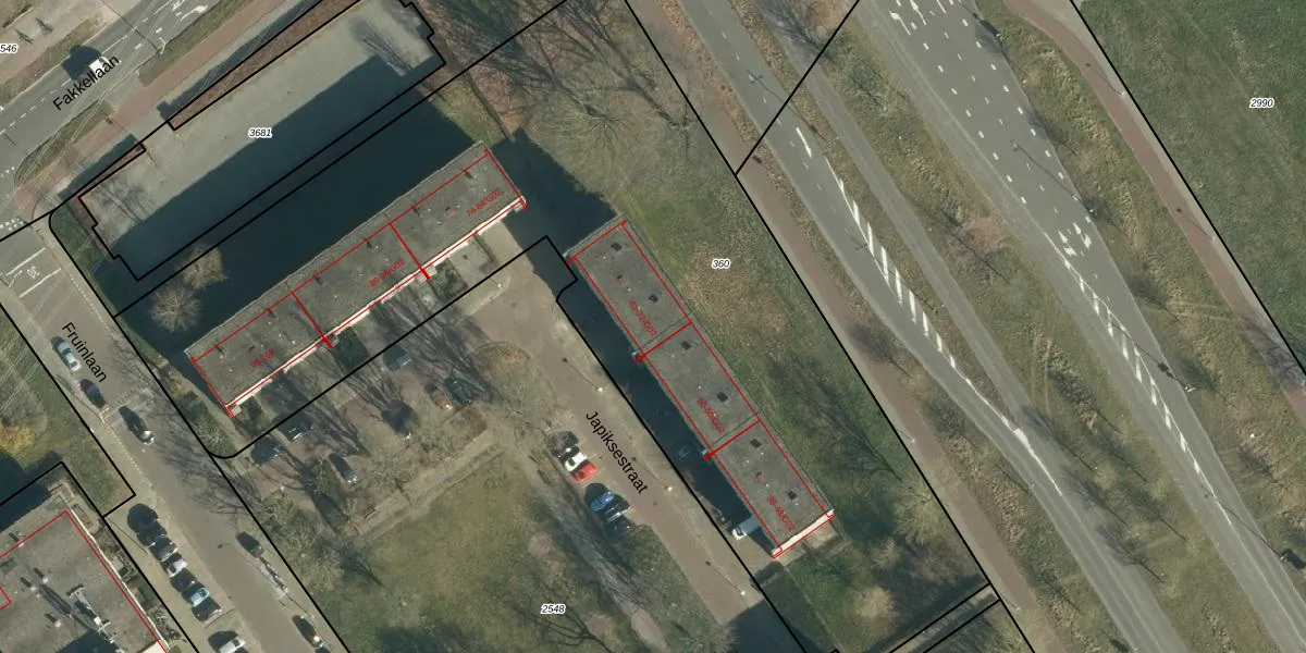 Het perceel waarop Japiksestraat 66 staat heeft een oppervlakte van 5116 m². Dit is een zeer groot perceel. De perceeloppervlakte wordt geregistreerd door het Kadaster. Gedetailleerde informatie over de maten van dit perceel kunt u vinden in het rapport Kadastrale kaart met maatvoering van Japiksestraat 66.