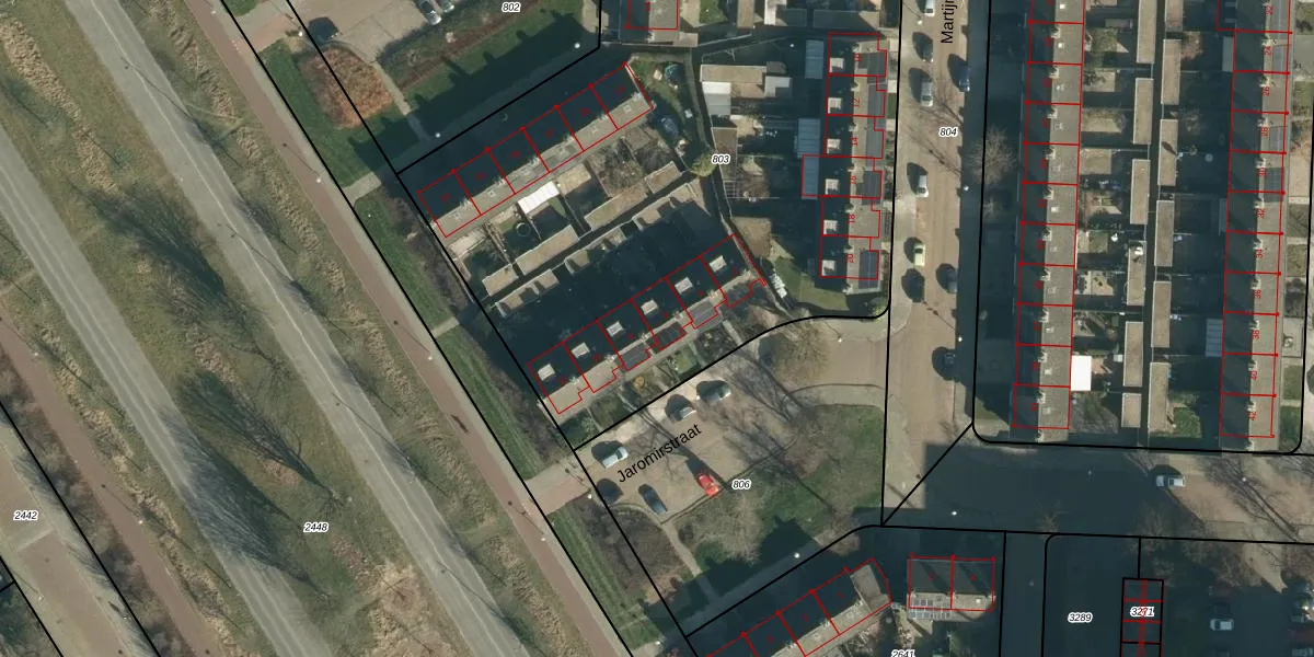 Jaromirstraat 6 is gelegen op kadastraal perceel WSL01P803. Deze kadastrale aanduiding is uniek en wordt gebruikt door het Kadaster om eigendomsrechten en andere zakelijke rechten vast te leggen. Het perceel maakt onderdeel uit van de kadastrale gemeente Woensel.