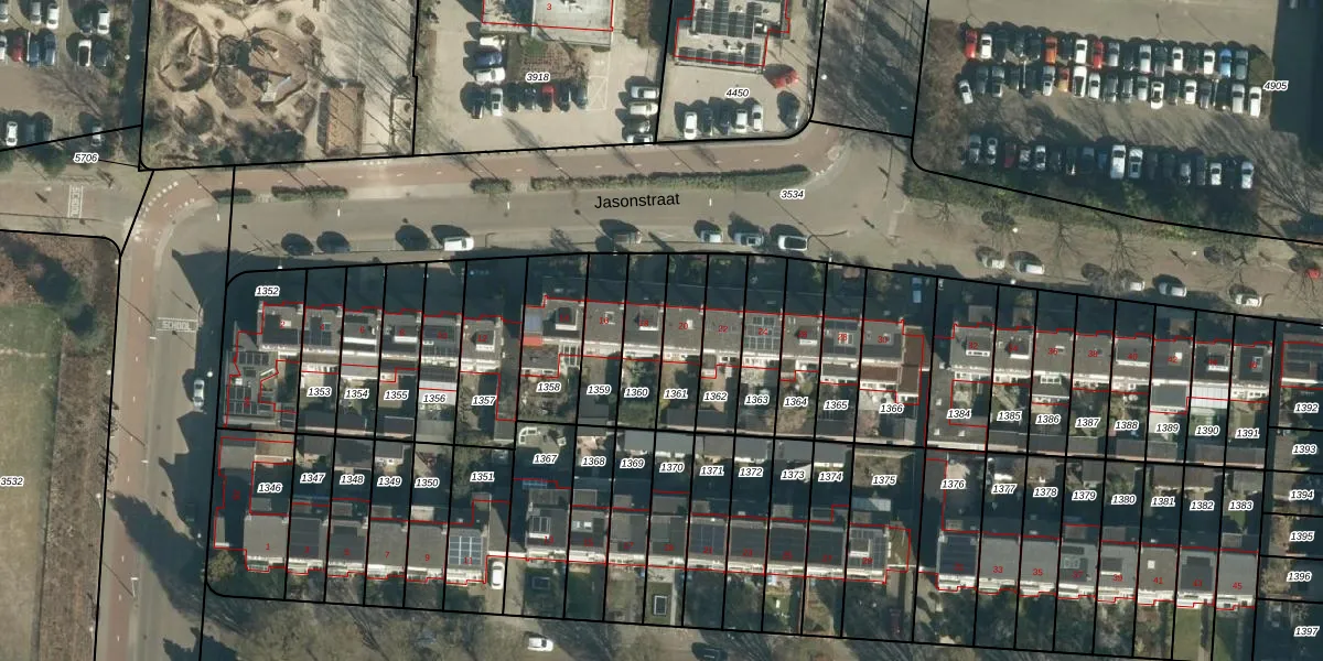 Het perceel waarop Jasonstraat 18 staat heeft een oppervlakte van 161 m². Dit is een middelgroot perceel. De perceeloppervlakte wordt geregistreerd door het Kadaster. Gedetailleerde informatie over de maten van dit perceel kunt u vinden in het rapport Kadastrale kaart met maatvoering van Jasonstraat 18.