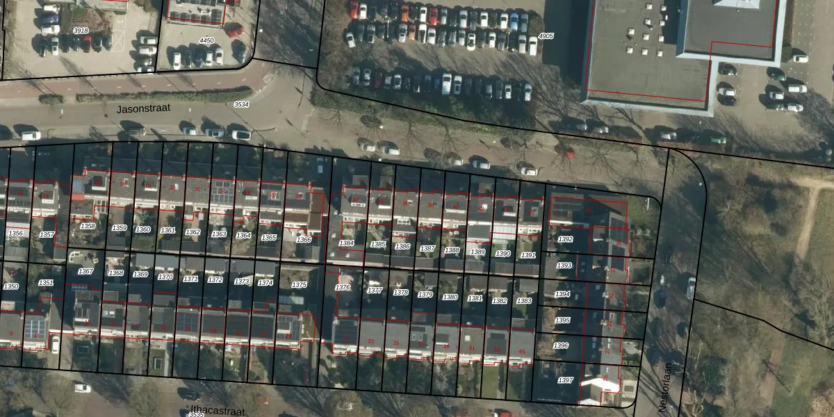 Jasonstraat 36 is gelegen op kadastraal perceel WSL01L1386. Deze kadastrale aanduiding is uniek en wordt gebruikt door het Kadaster om eigendomsrechten en andere zakelijke rechten vast te leggen. Het perceel maakt onderdeel uit van de kadastrale gemeente Woensel.
