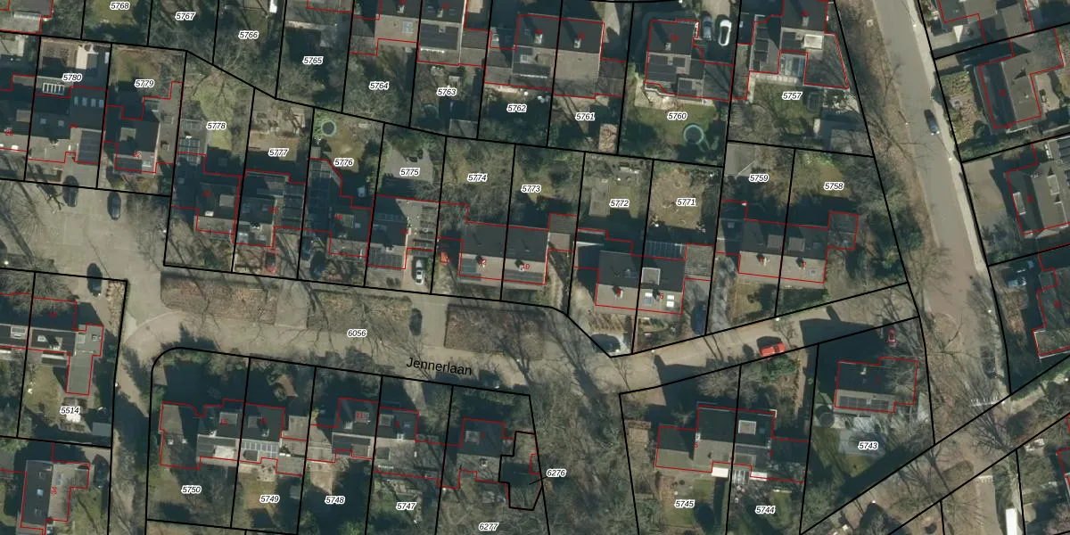 Jennerlaan 10 is gelegen op kadastraal perceel STM00D5773. Deze kadastrale aanduiding is uniek en wordt gebruikt door het Kadaster om eigendomsrechten en andere zakelijke rechten vast te leggen. Het perceel maakt onderdeel uit van de kadastrale gemeente Stratum.