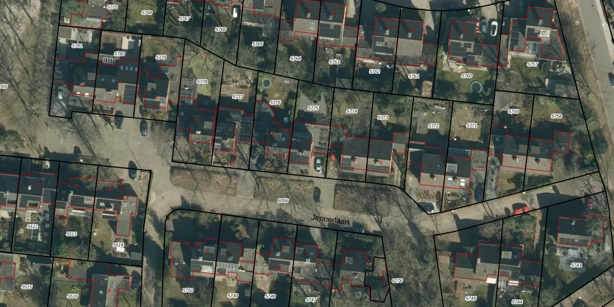 Jennerlaan 14 is gelegen op kadastraal perceel STM00D5775. Deze kadastrale aanduiding is uniek en wordt gebruikt door het Kadaster om eigendomsrechten en andere zakelijke rechten vast te leggen. Het perceel maakt onderdeel uit van de kadastrale gemeente Stratum.