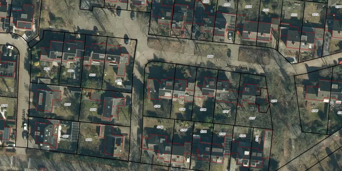 Het perceel waarop Jennerlaan 15 staat heeft een oppervlakte van 554 m². Dit is een groot perceel. De perceeloppervlakte wordt geregistreerd door het Kadaster. Gedetailleerde informatie over de maten van dit perceel kunt u vinden in het rapport Kadastrale kaart met maatvoering van Jennerlaan 15.