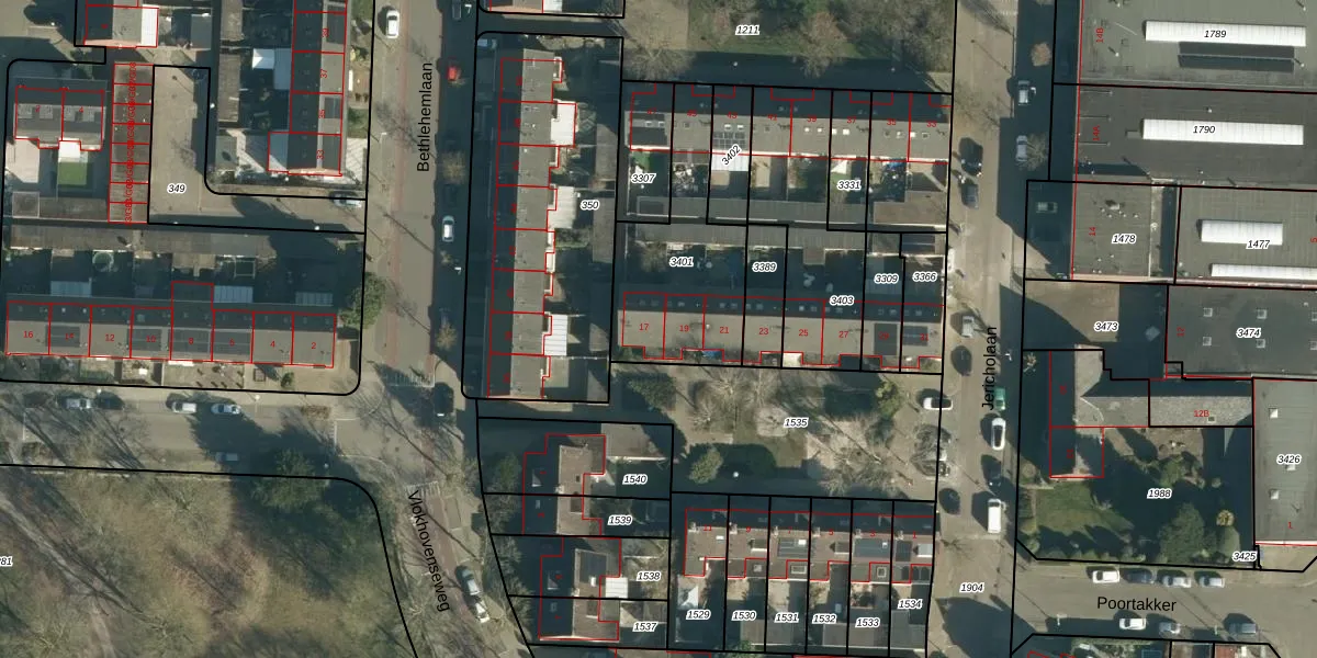 Jericholaan 17 is gelegen op kadastraal perceel WSL01M3401. Deze kadastrale aanduiding is uniek en wordt gebruikt door het Kadaster om eigendomsrechten en andere zakelijke rechten vast te leggen. Het perceel maakt onderdeel uit van de kadastrale gemeente Woensel.
