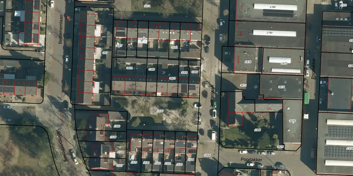 Jericholaan 27 is gelegen op kadastraal perceel WSL01M3403. Deze kadastrale aanduiding is uniek en wordt gebruikt door het Kadaster om eigendomsrechten en andere zakelijke rechten vast te leggen. Het perceel maakt onderdeel uit van de kadastrale gemeente Woensel.