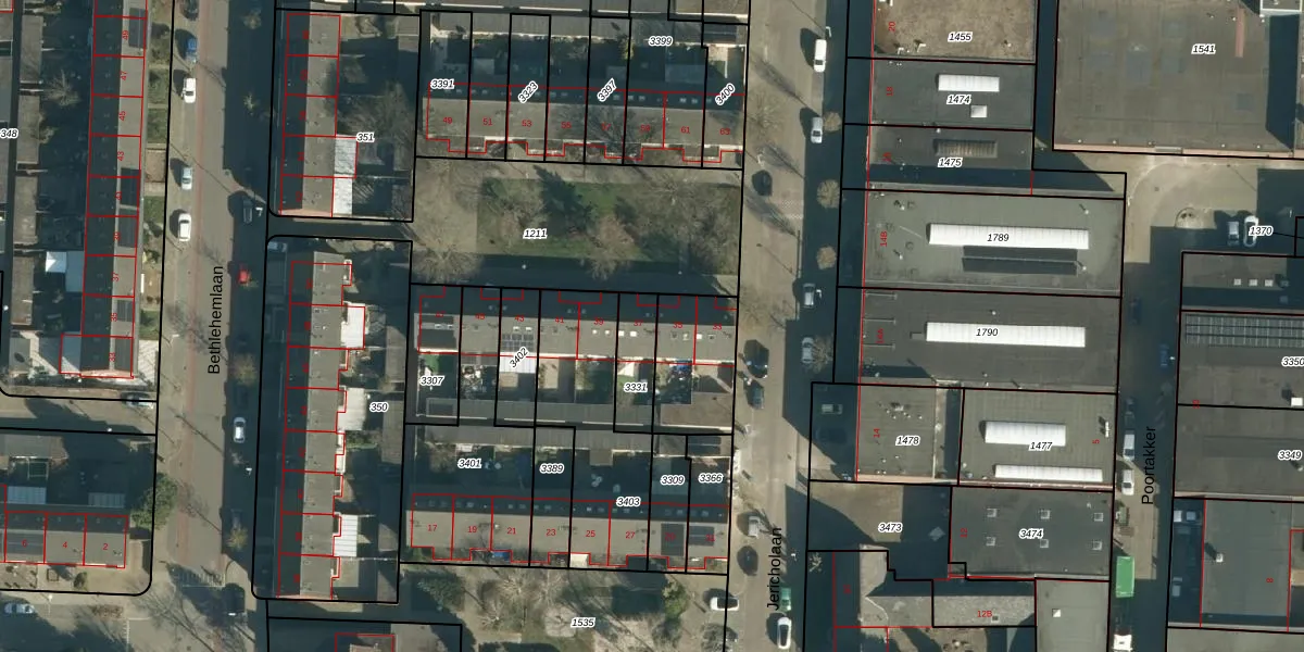 Jericholaan 37 is gelegen op kadastraal perceel WSL01M3331. Deze kadastrale aanduiding is uniek en wordt gebruikt door het Kadaster om eigendomsrechten en andere zakelijke rechten vast te leggen. Het perceel maakt onderdeel uit van de kadastrale gemeente Woensel.