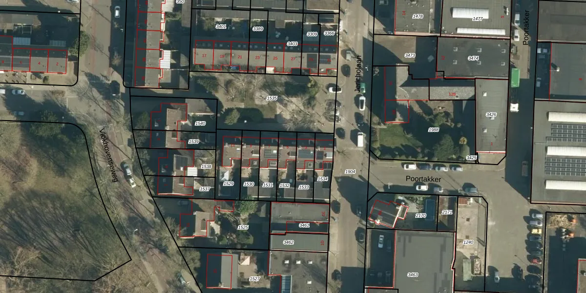Gebruik de zoekbalk of klik op een perceel voor informatie over de adressen binnen dit perceel.