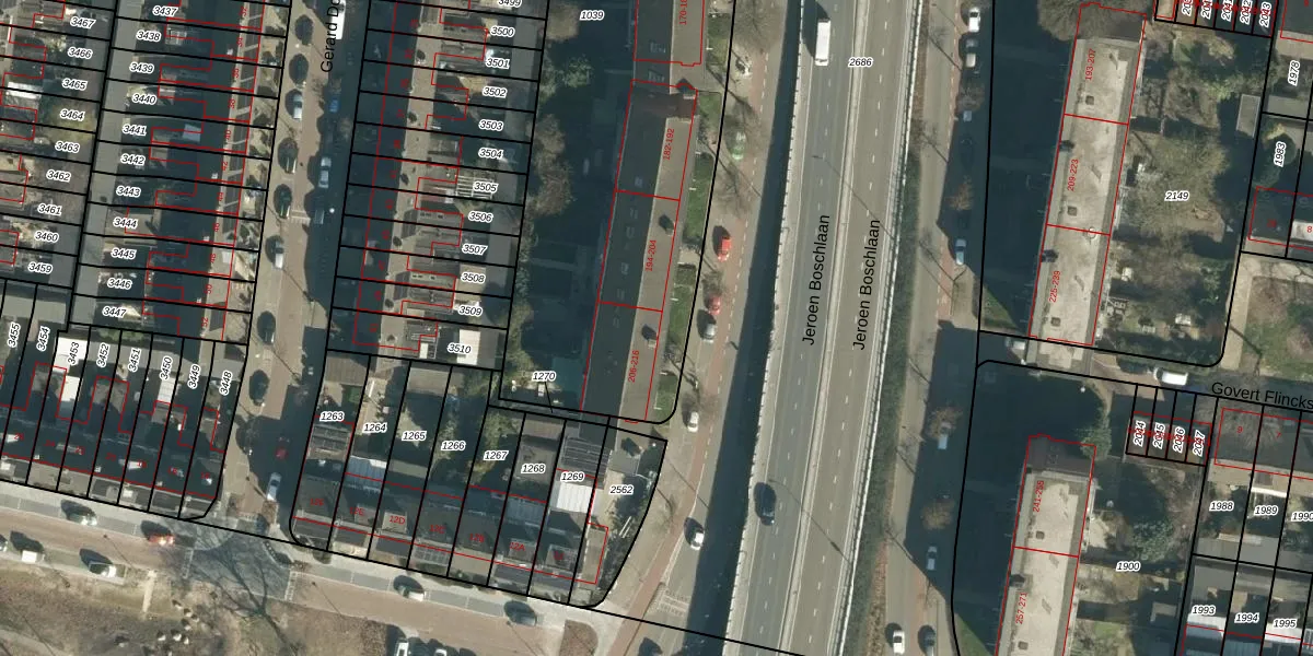 Het perceel waarop Jeroen Boschlaan 206 staat heeft een oppervlakte van 2974 m². Dit is een zeer groot perceel. De perceeloppervlakte wordt geregistreerd door het Kadaster. Gedetailleerde informatie over de maten van dit perceel kunt u vinden in het rapport Kadastrale kaart met maatvoering van Jeroen Boschlaan 206.