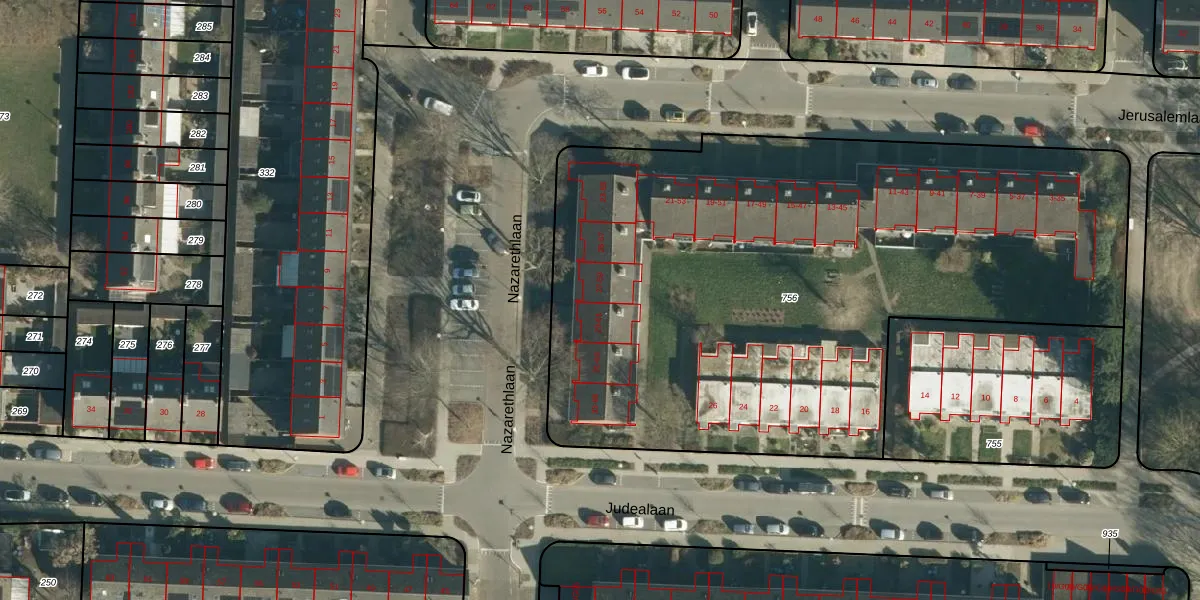Het perceel waarop Jerusalemlaan 59 staat heeft een oppervlakte van 4052 m². Dit is een zeer groot perceel. De perceeloppervlakte wordt geregistreerd door het Kadaster. Gedetailleerde informatie over de maten van dit perceel kunt u vinden in het rapport Kadastrale kaart met maatvoering van Jerusalemlaan 59.