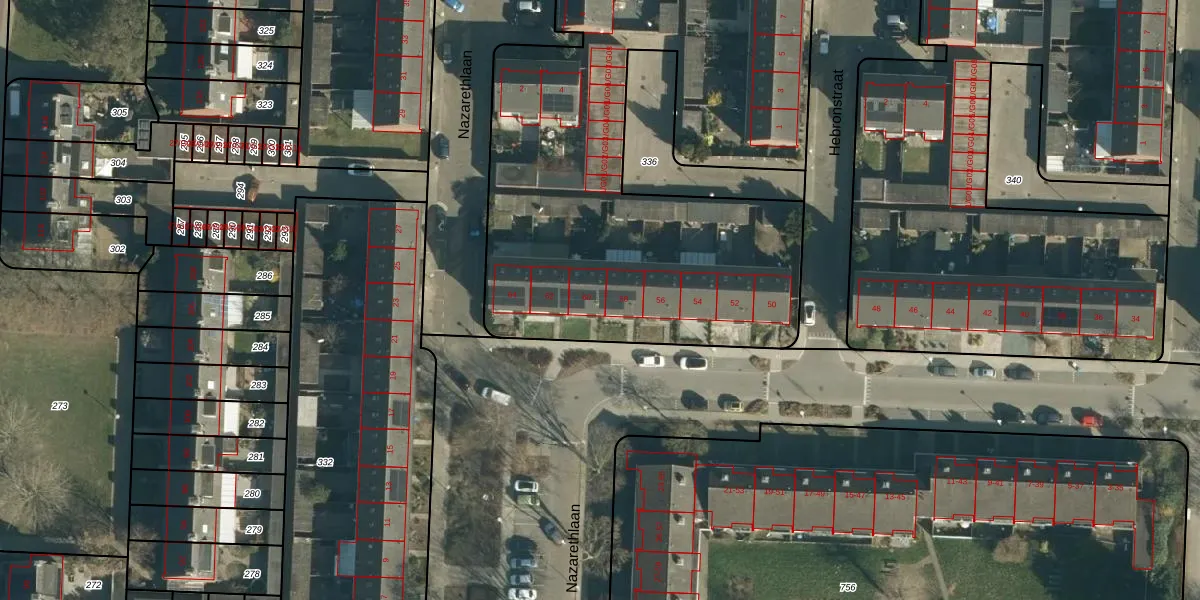 Het perceel waarop Jerusalemlaan 60 staat heeft een oppervlakte van 3863 m². Dit is een zeer groot perceel. De perceeloppervlakte wordt geregistreerd door het Kadaster. Gedetailleerde informatie over de maten van dit perceel kunt u vinden in het rapport Kadastrale kaart met maatvoering van Jerusalemlaan 60.