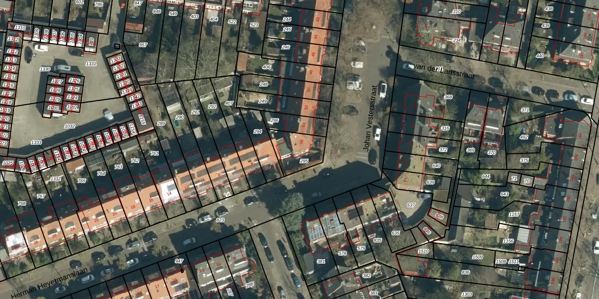 Het perceel waarop Johan Vestersstraat 56 staat heeft een oppervlakte van 206 m². Dit is een middelgroot perceel. De perceeloppervlakte wordt geregistreerd door het Kadaster. Gedetailleerde informatie over de maten van dit perceel kunt u vinden in het rapport Kadastrale kaart met maatvoering van Johan Vestersstraat 56.