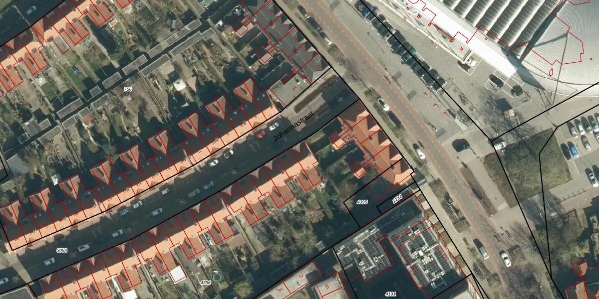 Johannastraat 1 is gelegen op kadastraal perceel STR03C4396. Deze kadastrale aanduiding is uniek en wordt gebruikt door het Kadaster om eigendomsrechten en andere zakelijke rechten vast te leggen. Het perceel maakt onderdeel uit van de kadastrale gemeente Strijp.