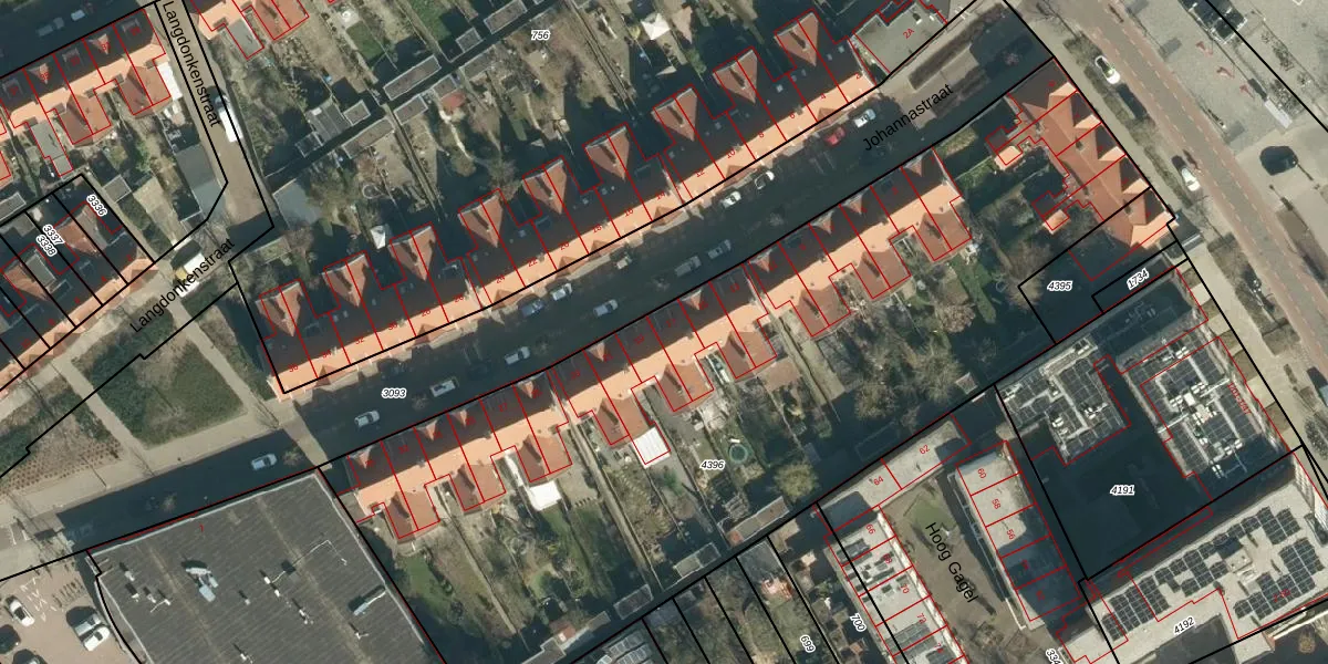 Het perceel waarop Johannastraat 17 staat heeft een oppervlakte van 4611 m². Dit is een zeer groot perceel. De perceeloppervlakte wordt geregistreerd door het Kadaster. Gedetailleerde informatie over de maten van dit perceel kunt u vinden in het rapport Kadastrale kaart met maatvoering van Johannastraat 17.