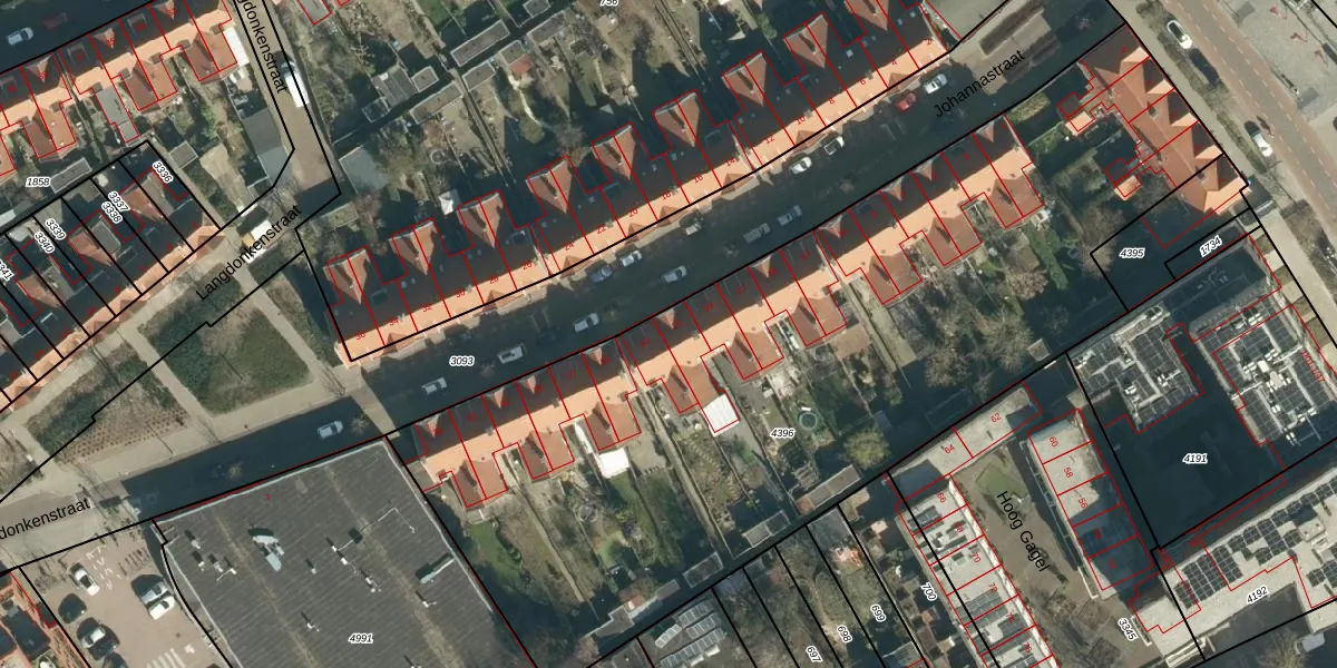 Johannastraat 21 is gelegen op kadastraal perceel STR03C4396. Deze kadastrale aanduiding is uniek en wordt gebruikt door het Kadaster om eigendomsrechten en andere zakelijke rechten vast te leggen. Het perceel maakt onderdeel uit van de kadastrale gemeente Strijp.