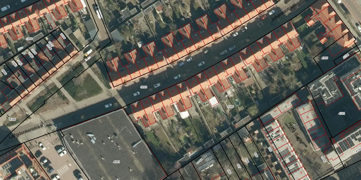 Johannastraat 25 is gelegen op kadastraal perceel STR03C4396. Deze kadastrale aanduiding is uniek en wordt gebruikt door het Kadaster om eigendomsrechten en andere zakelijke rechten vast te leggen. Het perceel maakt onderdeel uit van de kadastrale gemeente Strijp.