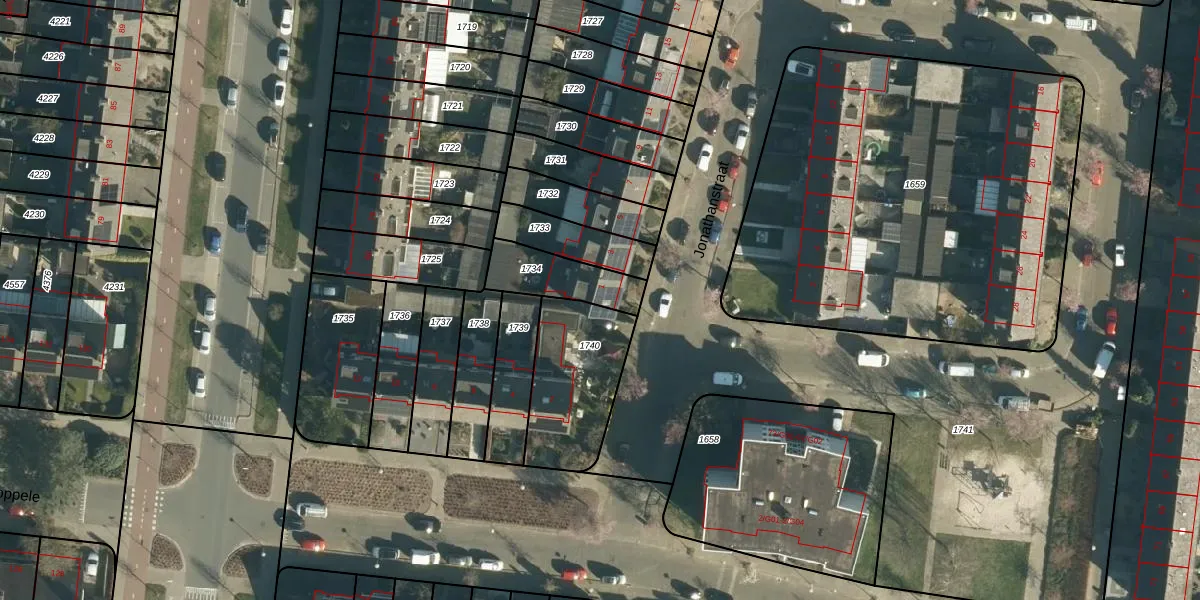 Jonathanstraat 1 is gelegen op kadastraal perceel WSL01C1734. Deze kadastrale aanduiding is uniek en wordt gebruikt door het Kadaster om eigendomsrechten en andere zakelijke rechten vast te leggen. Het perceel maakt onderdeel uit van de kadastrale gemeente Woensel.