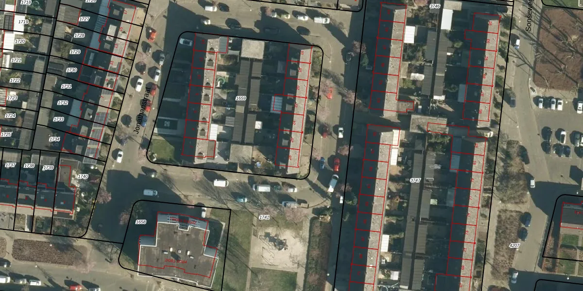 Jonathanstraat 26 is gelegen op kadastraal perceel WSL01C1659. Deze kadastrale aanduiding is uniek en wordt gebruikt door het Kadaster om eigendomsrechten en andere zakelijke rechten vast te leggen. Het perceel maakt onderdeel uit van de kadastrale gemeente Woensel.