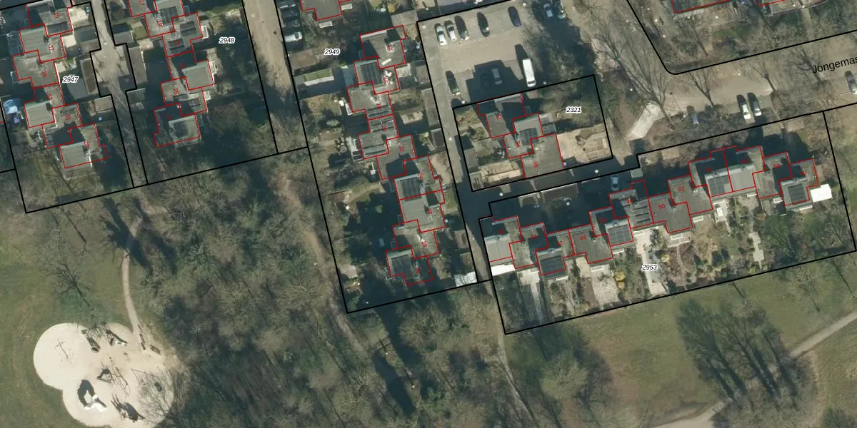 Het perceel waarop Jongemastate 26 staat heeft een oppervlakte van 3526 m². Dit is een zeer groot perceel. De perceeloppervlakte wordt geregistreerd door het Kadaster. Gedetailleerde informatie over de maten van dit perceel kunt u vinden in het rapport Kadastrale kaart met maatvoering van Jongemastate 26.