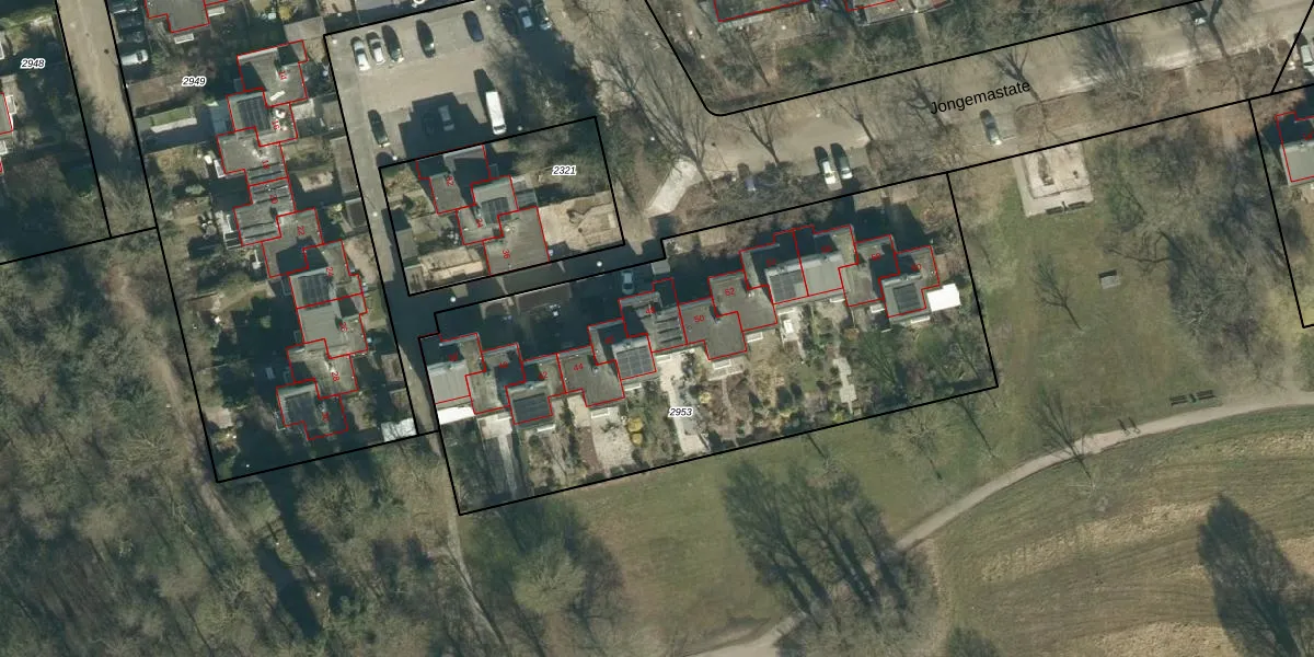 Het perceel waarop Jongemastate 48 staat heeft een oppervlakte van 2704 m². Dit is een zeer groot perceel. De perceeloppervlakte wordt geregistreerd door het Kadaster. Gedetailleerde informatie over de maten van dit perceel kunt u vinden in het rapport Kadastrale kaart met maatvoering van Jongemastate 48.