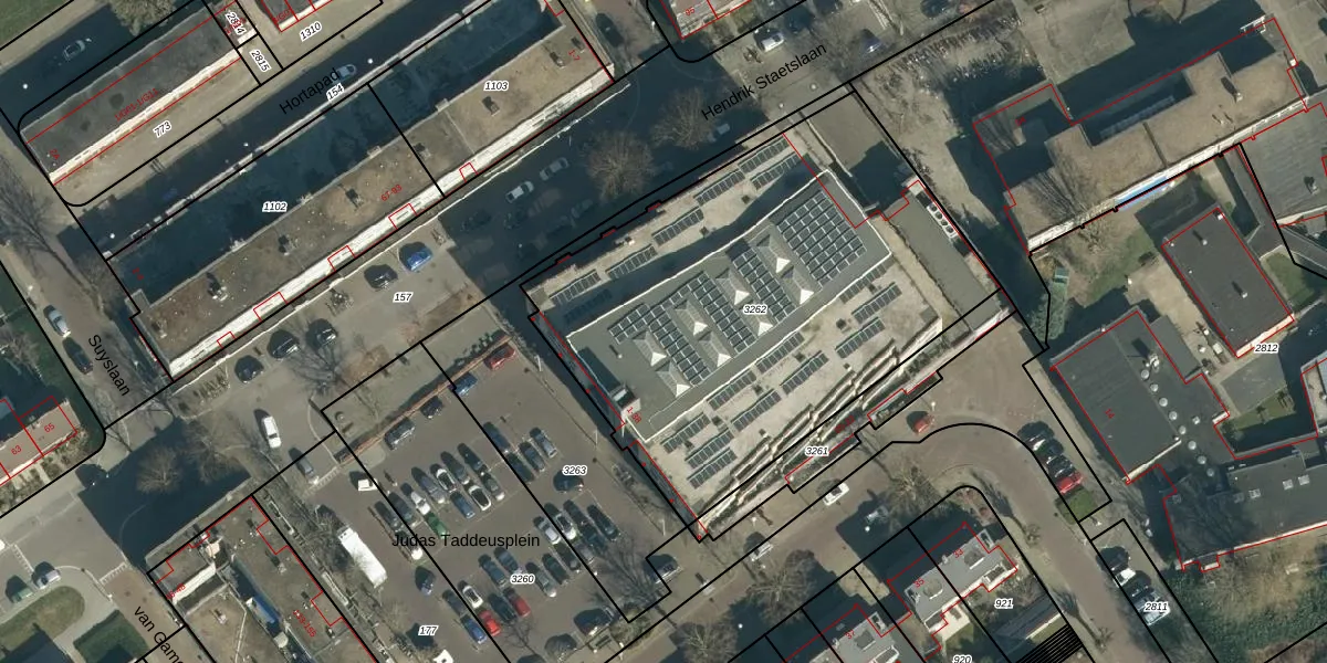 Judas Taddeusplein 28 is gelegen op kadastraal perceel WSL01P3262. Deze kadastrale aanduiding is uniek en wordt gebruikt door het Kadaster om eigendomsrechten en andere zakelijke rechten vast te leggen. Het perceel maakt onderdeel uit van de kadastrale gemeente Woensel.