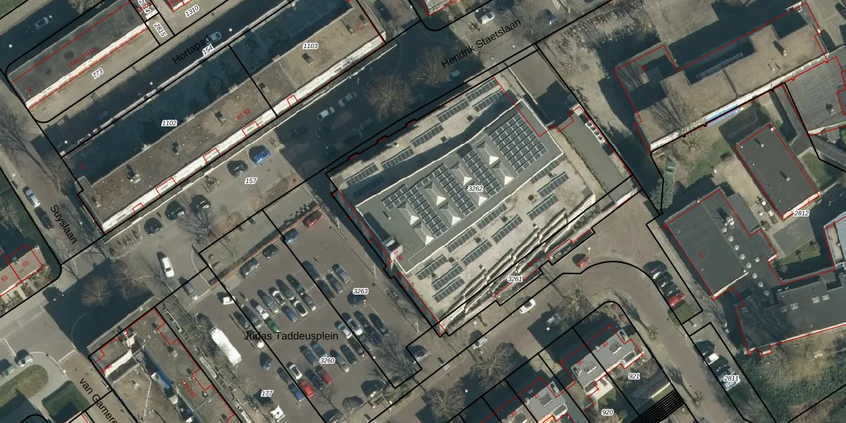 Judas Taddeusplein 29 is gelegen op kadastraal perceel WSL01P3262. Deze kadastrale aanduiding is uniek en wordt gebruikt door het Kadaster om eigendomsrechten en andere zakelijke rechten vast te leggen. Het perceel maakt onderdeel uit van de kadastrale gemeente Woensel.