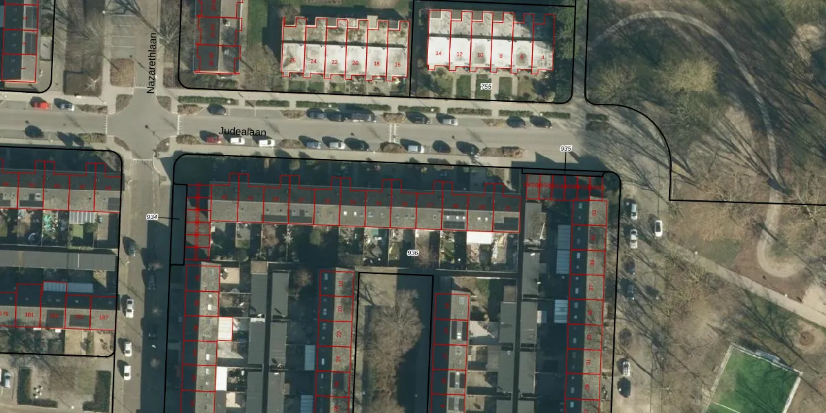 Judealaan 29 is gelegen op kadastraal perceel WSL01M936. Deze kadastrale aanduiding is uniek en wordt gebruikt door het Kadaster om eigendomsrechten en andere zakelijke rechten vast te leggen. Het perceel maakt onderdeel uit van de kadastrale gemeente Woensel.