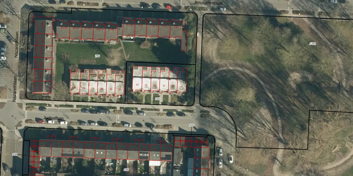 Het perceel waarop Judealaan 6 staat heeft een oppervlakte van 937 m². Dit is een groot perceel. De perceeloppervlakte wordt geregistreerd door het Kadaster. Gedetailleerde informatie over de maten van dit perceel kunt u vinden in het rapport Kadastrale kaart met maatvoering van Judealaan 6.